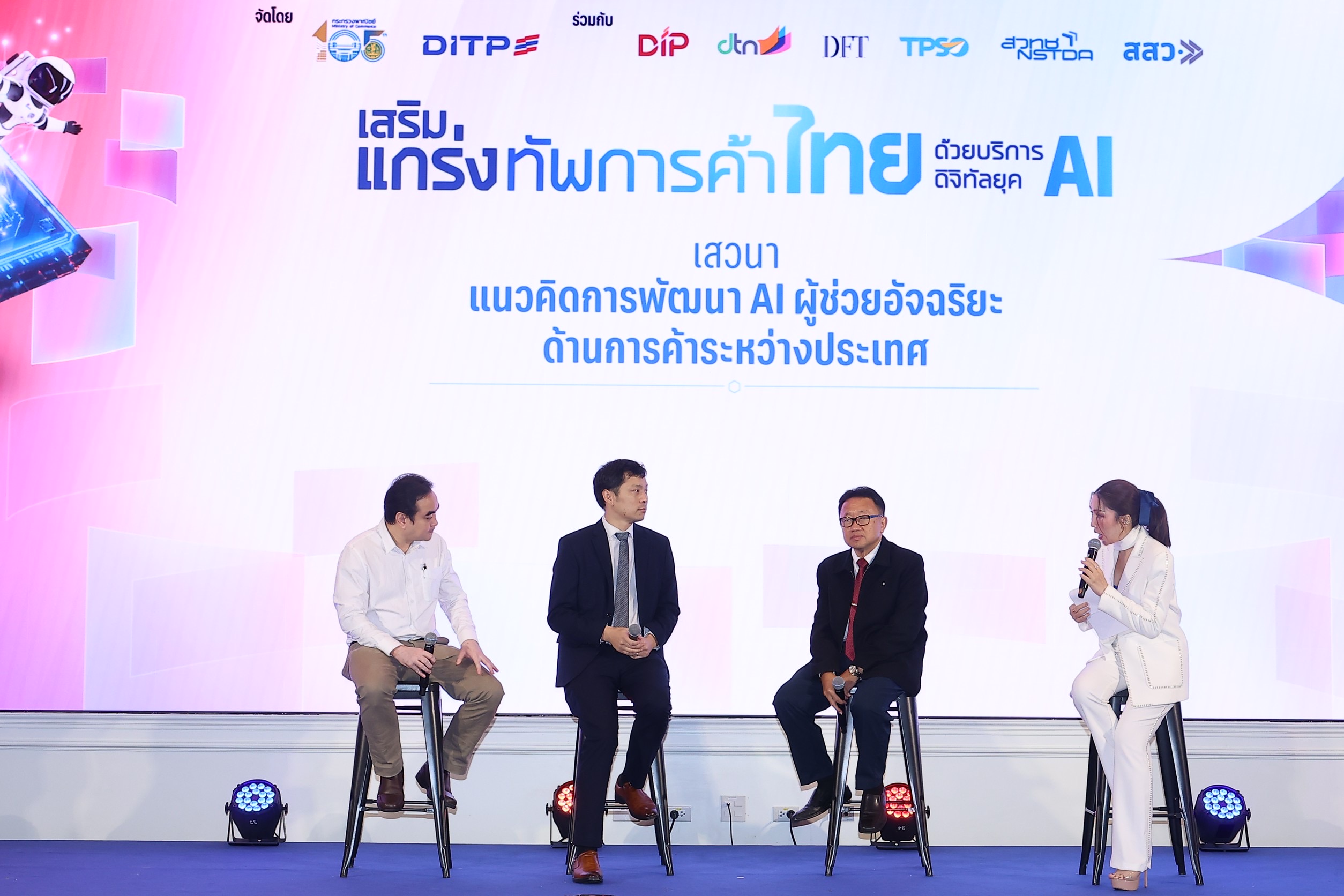 กรมส่งเสริมการค้าระหว่างประเทศ (DITP) กระทรวงพาณิชย์ แถลง kick off การพัฒนานวัตกรรมดิจิทัลสู่โลกการค้ายุคใหม่ ในงาน “เสริมแกร่งทัพการค้าไทย ด้วยบริการดิจิทัล ยุค AI” เพื่อเสริมสร้างขีดความสามารถทางการแข่งขันแก่ผู้ประกอบการไทยในตลาดโลก โดยมีปลัดกระทรวงพาณิชย์ (นายวุฒิไกร ลีวีระพันธุ์ เป็นประธานเปิดงานและเป็นสักขีพยาน การลงนาม MOU 2 ฉบับ ได้แก่ 1) การพัฒนา AI Chatbot ผู้ช่วยอัจฉริยด้านการค้า ระหว่าง 6 หน่วยงาน ได้แก่ กรมส่งเสริมการค้าระห่างประเทศ กรมทรัพย์สินทางปัญญา กรมเจรจาการค้าระหว่างประเทศ สำนักงานนโยบายและยุทธศาสตร์การค้า กรมการค้าต่างประเทศ ซึ่งจะบูรณาการข้อมูลด้านการค้าร่วมกัน โดยมีศูนย์เทคโนโลยีอิเล็กทรอนิกส์และคอมพิวเตอร์แห่งชาติ (NECTEC) ภายใต้สำนักงานพัฒนาวิทยาศาสตร์และเทคโนโลยีแห่งชาติ (สวทช.) เป็นผู้ให้ความช่วยเหลือทางวิชาการและผู้เชี่ยวชาญ 2) การเชื่อมโยงบัญชีผู้ใช้งานและข้อมูล SMEs ระหว่าง DITP และสำนักงานส่งเสริมวิสาหกิจขนาดกลางและขนาดย่อม (สสว.) เพื่อยกระดับการอำนวยความสะดวกแก่ SMEs ไทยในการเข้าถึงบริการระหว่าง 2 หน่วยงานแบบไร้รอยต่อ ทั้งนี้ ตั้งเป้าพัฒนา AI Chatbot แล้วเสร็จในปี 2569