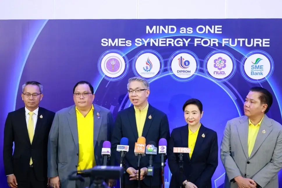นายณัฐพล รังสิตพล ปลัดกระทรวงอุตสาหกรรม เปิดเผยว่า ปัจจุบันเศรษฐกิจและสังคมไทยเผชิญความเปลี่ยนแปลงรอบด้าน ทั้งการแข่งขันระดับโลก ความก้าวหน้าทางเทคโนโลยี และความท้าทายด้านสิ่งแวดล้อม ส่งผลต่อการอยู่รอดและการเติบโตของวิสาหกิจขนาดกลางและขนาดย่อม (SMEs) ซึ่งเป็นกำลังหลักในการสร้างงานและขับเคลื่อนเศรษฐกิจฐานราก กระทรวงอุตสาหกรรมจึงเดินหน้านโยบาย “Mind as One” การรวมพลังหัวใจเดียวกัน ผ่านความร่วมมือกับหน่วยงานในสังกัดและพันธมิตรเชิงกลยุทธ์ เพื่อสนับสนุนผู้ประกอบการในทุกมิติ ตั้งแต่การสร้างองค์ความรู้ การเชื่อมโยงเครือข่าย ไปจนถึงการผลักดันนโยบายที่เอื้อต่อการลงทุนและการเติบโตอย่างยั่งยืน จึงได้มอบหมายให้ กรมส่งเสริมอุตสาหกรรม หรือ ดีพร้อม (DIPROM) เป็นหน่วยงานหลักในการบูรณาการกับพันธมิตร ได้แก่ กรมโรงงานอุตสาหกรรม (กรอ.) การนิคมอุตสาหกรรมแห่งประเทศไทย (กนอ.) ธนาคารพัฒนาวิสาหกิจขนาดกลางและขนาดย่อม (ธพว.) และสำนักงานปลัดกระทรวงการอุดมศึกษา วิทยาศาสตร์ วิจัยและนวัตกรรม (สป.อว.) เพื่อผลักดันโครงการเชิงยุทธศาสตร์ที่สอดคล้องกับทิศทางเศรษฐกิจโลก โดยมี “นิคมฯ SMEs” เป็นกลไกสำคัญ เปิดโอกาสให้ผู้ประกอบการ ย้ายถิ่นฐานหรือขยายการผลิตเข้าสู่พื้นที่นิคมฯ เพื่อรับการดูแลอย่างเป็นระบบ ลดภาระการจัดการสิ่งแวดล้อมและของเสีย เพิ่มความโปร่งใส มีมาตรฐาน และช่วยจัดระเบียบ SMEs ให้เติบโตในทิศทางเดียวกัน พร้อมเอื้อต่อการวางแผนพัฒนาด้านเทคโนโลยีและนวัตกรรมในอนาคต ซึ่งความร่วมมือครั้งนี้ไม่เพียงบูรณาการองค์ความรู้และถ่ายทอดเทคโนโลยี แต่ยังเสริมศักยภาพผู้ประกอบการไทยให้เข้มแข็ง เชื่อมโยงห่วงโซ่อุปทานกับ SMEs และชุมชนโดยรอบ เพื่อขับเคลื่อนเศรษฐกิจไทยให้เติบโตอย่างมั่นคง โดยคาดว่าจะสร้างมูลค่าทางเศรษฐกิจได้กว่า 1 พันล้านบาท พร้อมเชิญชวนผู้ประกอบการ SMEs เข้าร่วม “นิคมฯ SME” เพื่อก้าวสู่การเติบโตที่แข็งแรงและยั่งยืนร่วมกัน
